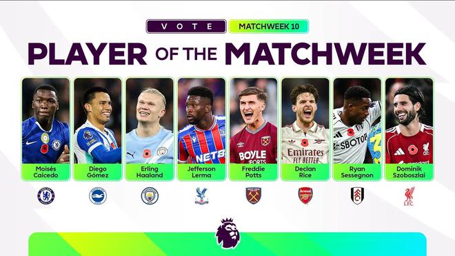 北京時(shí)間11月4日,英超官方公布了第10輪比賽的最佳球員候選名單,其中賴斯、哈蘭德、索博斯洛伊、凱塞多等人在列。